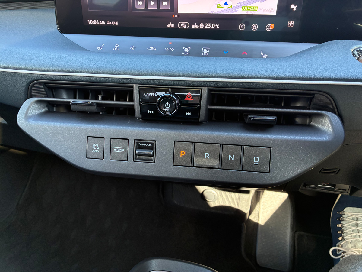 センターディスプレイの下にP/R/N/Dと横に並んだシフトスイッチの台座部分がここだけ艶消しグレーの樹脂製で、水道パイプを思わせて安っぽく見える。悪目立ちしている。その点について、商品戦略本部のチーフプロダクトスペシャリストのE氏に訊ねると、「当初はピアノブラック仕上げにする案で進んでいたが、“ピアノブラックは指紋の後が残って見苦しくなる”という別の車種でのクレームが世界中から寄せられていることを勘案して止めました。代わりに、この素材を選んだという次第です」