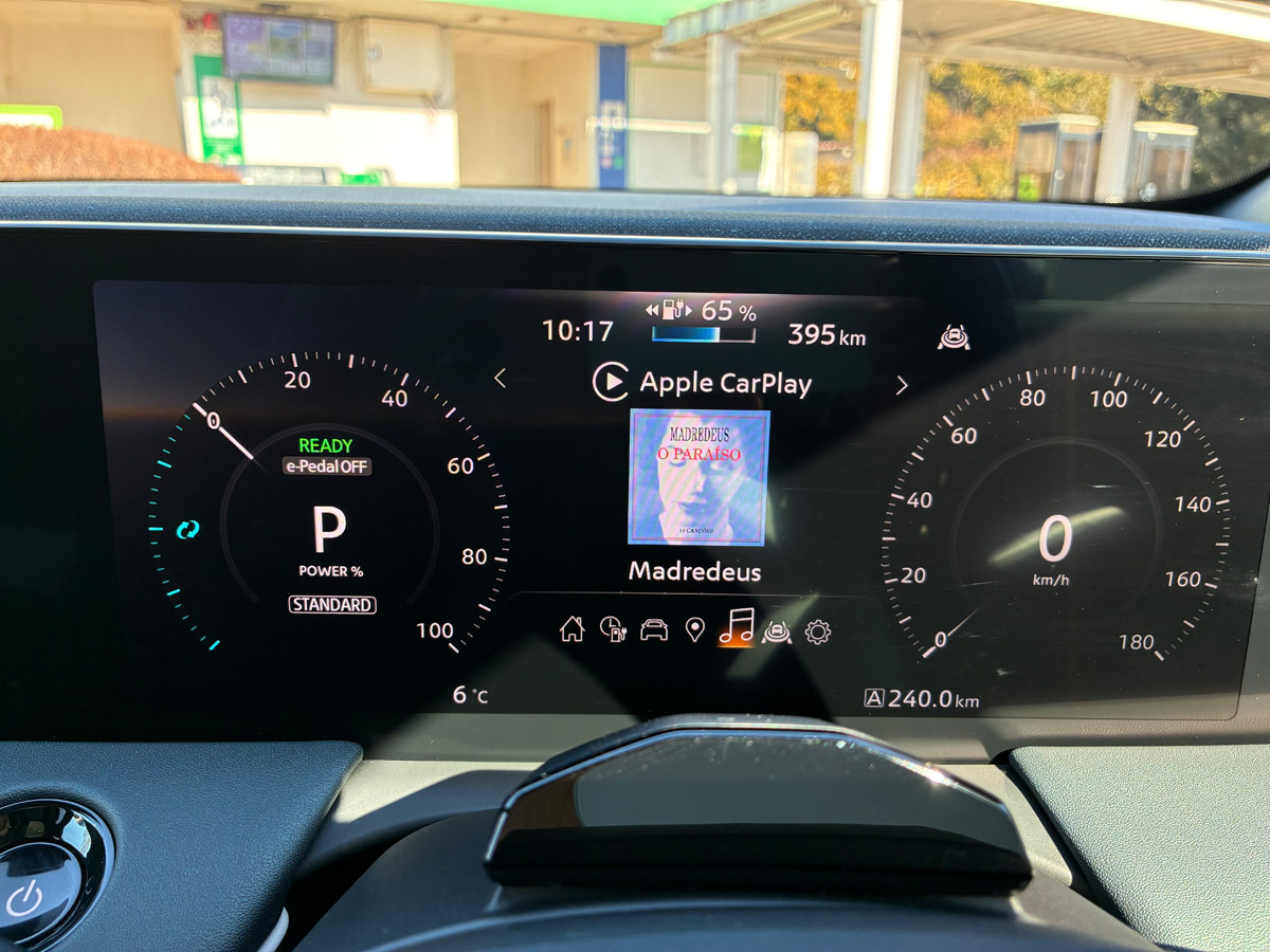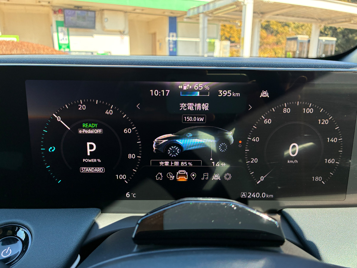 一方で、回生ブレーキのオートモードの効きは乗り始めから明確に感じられた。前車との車間距離をクルマがつねに監視していて、それに応じて回生ブレーキが無段階に強められていく。逆も作用する。この機能をオンオフするのもハンドル左上のマークを押すたびに変わっていく。マーク自体が青く点灯し、メーターパネル内にも表示が現れる。この操作も簡単で、使いやすい。日産では「インテリジェントディスタンスコントロール」と称しているが、他メーカーのものと機能もほぼ変わらない。