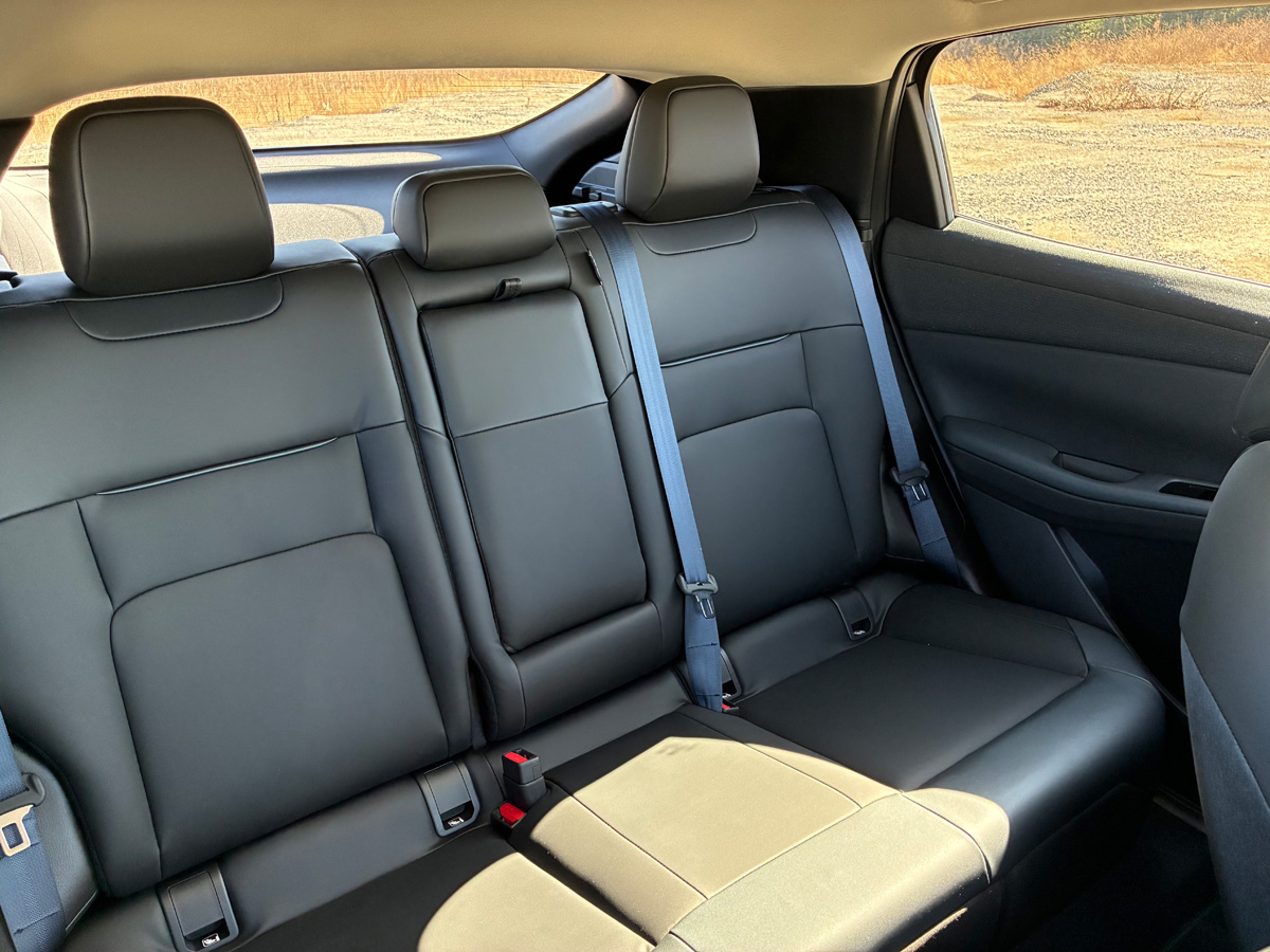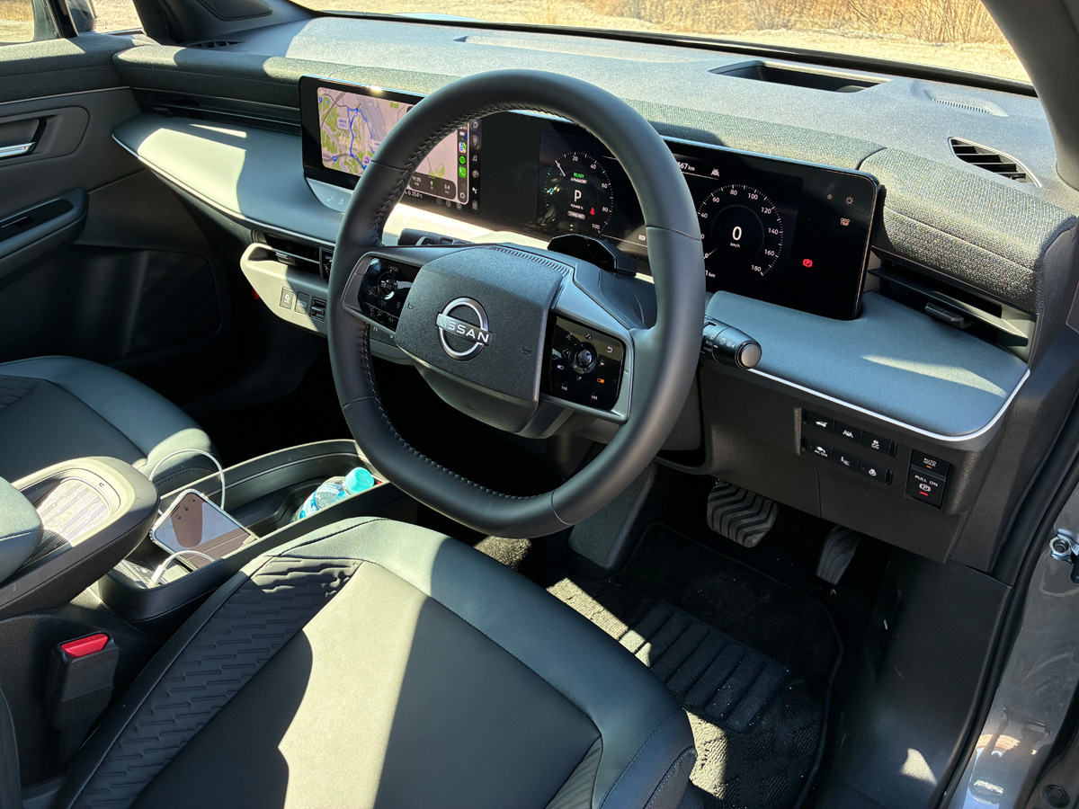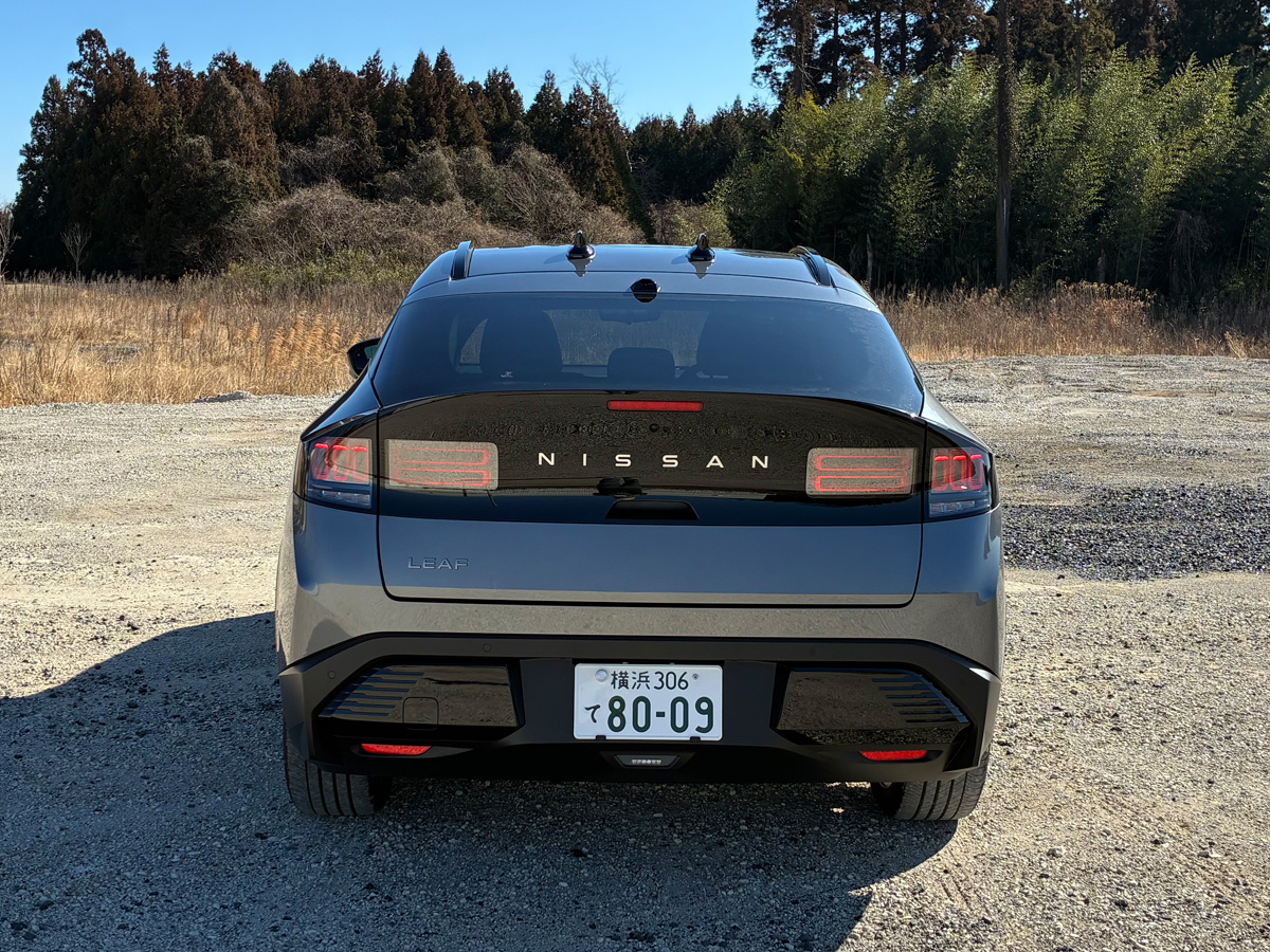 走り出して最初に気になったのは、ハンドルを切った時の反応だった。1車線の一般道を低速で走るような場面でも、クルマからの反応がやや過敏に感じられた。スポーツカーではないのだから、もっと穏やかなほうが好ましい。併せて、走行中のタイヤの上下動のドタバタする振動が強めに伝わってくるのも目立って感じられた。それらを抑えて、マイルドにしたほうが多くのユーザーに歓迎されるのではないか。「リーフ」というクルマの顧客層にも合っている。段差を乗り越えた際に返ってくるショックも強めだった。