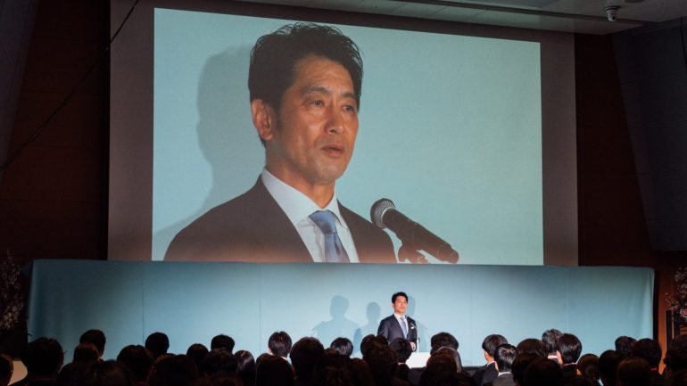 入社式は新社長にとっても”Day One”であり注目が集まっていた。電通グループの中核である株式会社電通の新トップは新入社員の前で何を語ったのか。