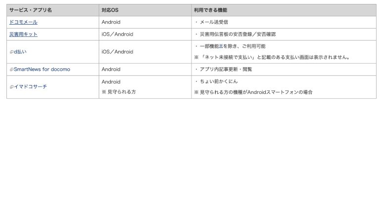 ドコモが提供するアプリのうち、本サービスに対応するアプリは以下のとおり。なお、提供機能に一部制限がある場合がある。