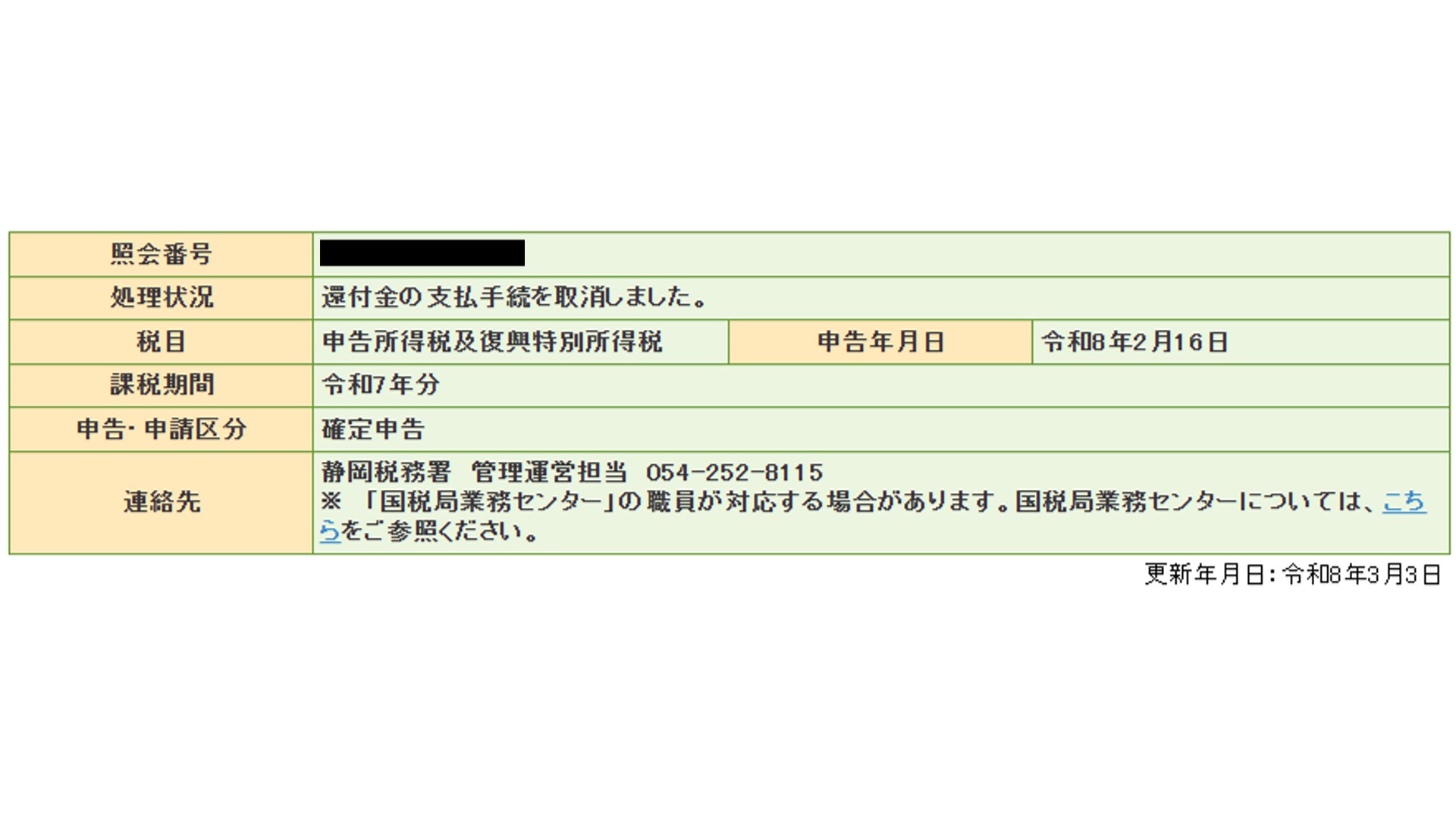 「還付金の支払手続を取消しました。」