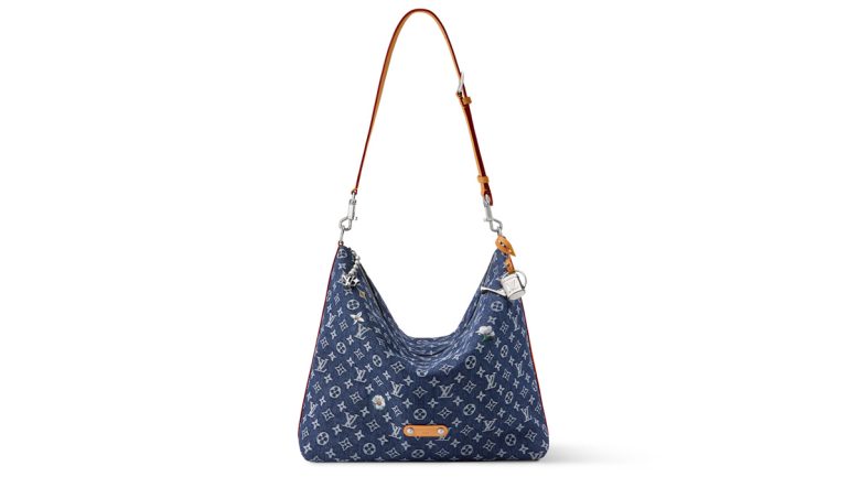 モノグラム·フラワー デニムが、トレンド感溢れるスタイルを演出するバッグ「バガボンド·ホーボー」。