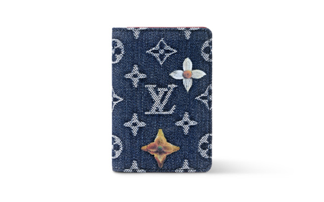 モノグラムが織り込まれたモノグラム·フラワー デニムにクラフツマンシップが息づく、メゾンのアイコニックなコンパクトサイズのカードケース「オーガナイザー·ドゥ ポッシュ」。