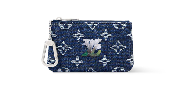 シルバーカラーのフックやチェーンに同系色のファスナーで仕上げた、モノグラム·フラワー デニムの「ポシェット·クレ」。クラフツマンシップが融合した実用的なデザインで、鍵やコイン、紙幣などをスマートに収納するのに最適。