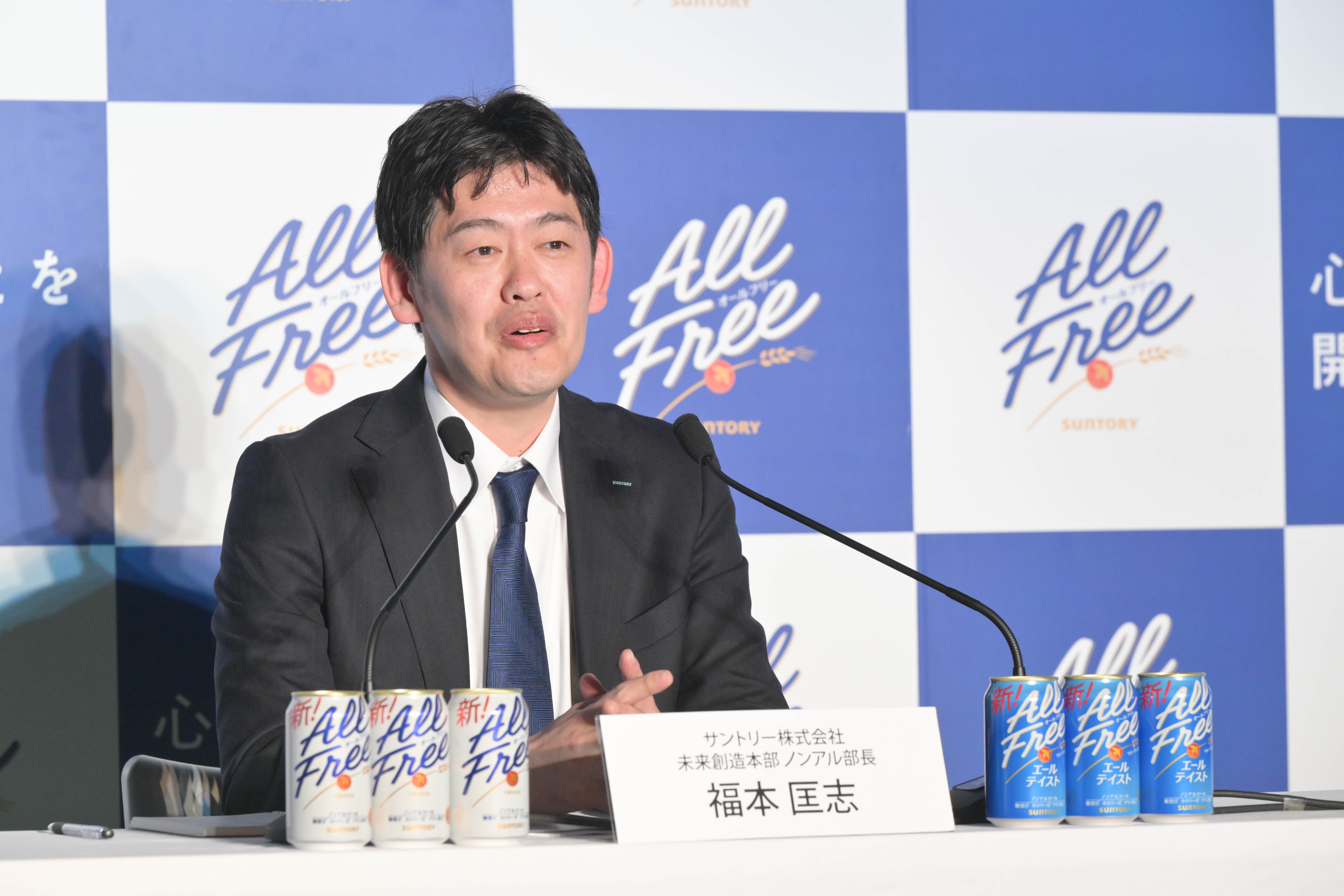 とはサントリー 未来創造本部ノンアル部長の福本匡志さん。未来創造本部という部署名も、ノンアル部長という肩書も実にユニーク。その未来創造本部が馬力全投入したビッグプロジェクトが「オールフリー」のブランドリニューアルである。
