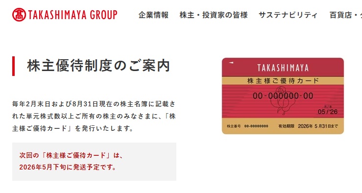 髙島屋の株主優待は10%割引できる株主優待カード(割引額の1円未満は切り捨て)で、権利月は8月と2月の年2回。この株主優待、制服購入でも割引適用できたという声を聞いている。高いものだと10万円ほどする制服。5万円では5,000円分、10万円では1万円分の値引きになるわけで、これはかなり大きい。