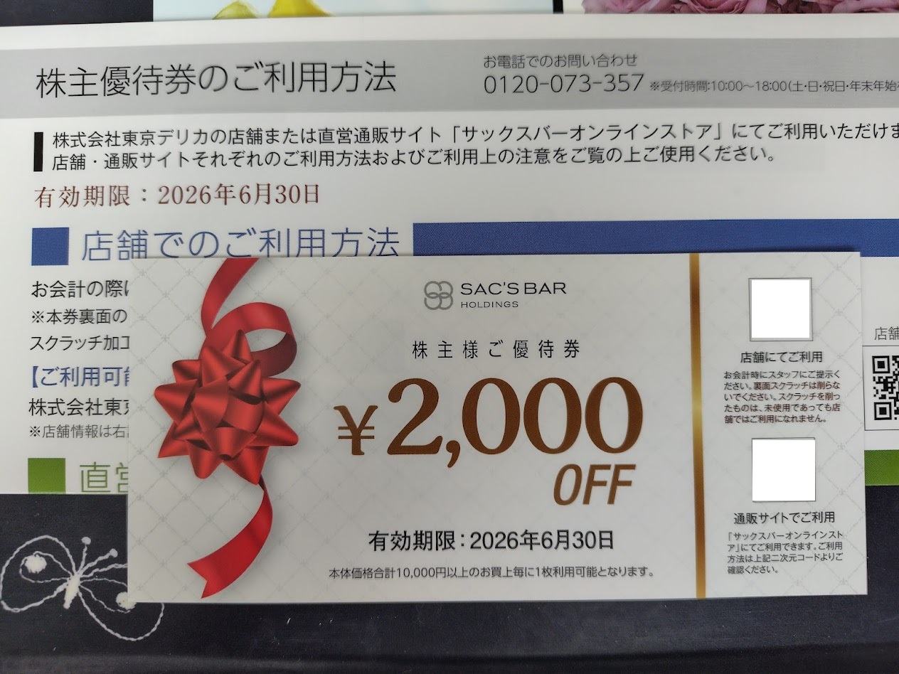 ショッピングセンターにお店がある「サックスバー」を展開する同社の株主優待は、100株で2,000円割引券。権利月は3月。これは、1万円ごとに1枚使えるため、2万円なら2枚使える。もし、1,000株あれば1万円相当の4商品のうち1つが選べる内容に変わり、バッグやスーツケースが過去にはもらえた。