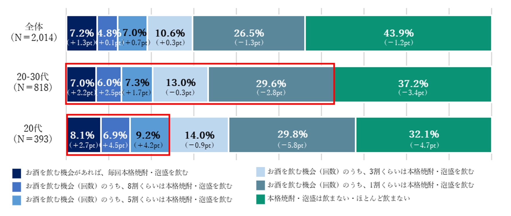 若年層で拡大する本格焼酎・泡盛の飲用機会