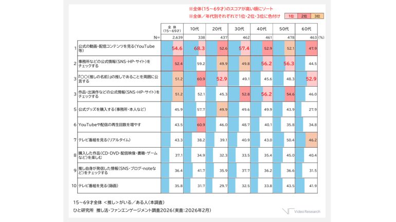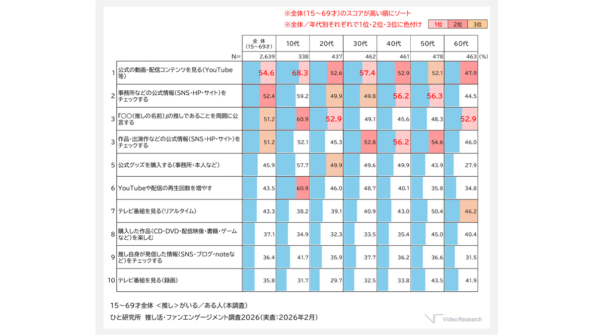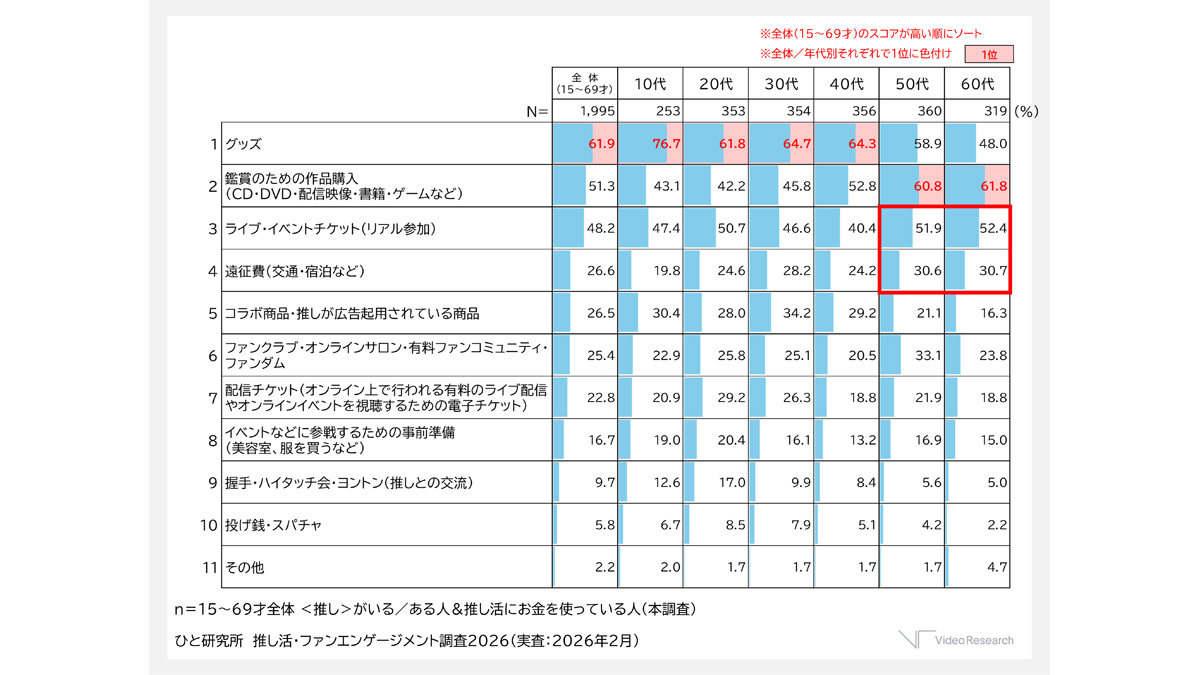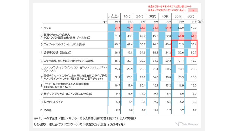 出典元:ビデオリサーチ ひと研究所調べ(2026年2月「推し活・ファンエンゲージメント調査2026」)