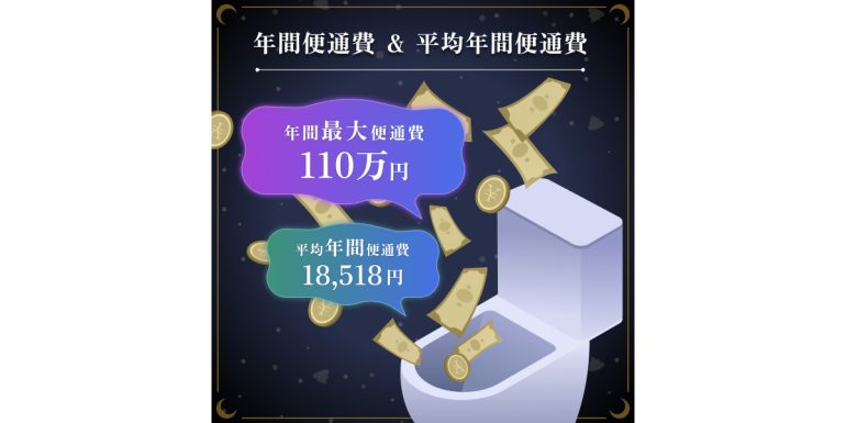 便秘に悩む人に対して、便通改善のために年間で費やすお金「便通費」を聞いたところ、最大は110万円に達し、前回より10万円も多く費やしている人がいることがわかった。また、便秘に悩む人の便通費の平均額は18,518円で、これは2年前の調査から約2千円減少している。