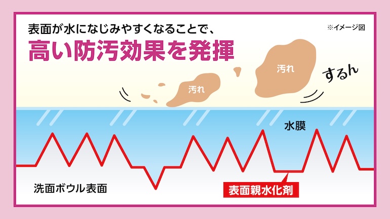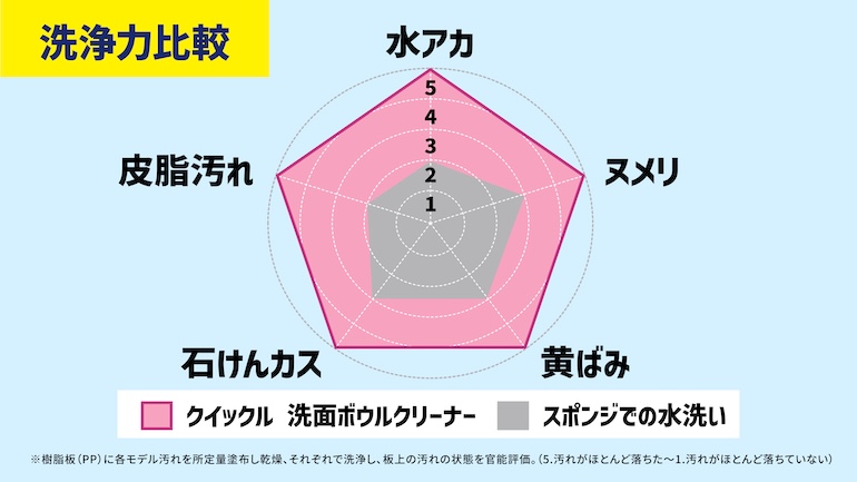 洗面ボウルは水垢やヌメリ、石けんカス、歯磨き粉、化粧など汚れの種類が多様なことから、洗剤の処方設計も簡単ではなかった。「汚れの種類ごとにベストな処方がありますが、さまざまな汚れが落とせる洗浄力にこだわって処方を設計しました」と輿石さんは話す。