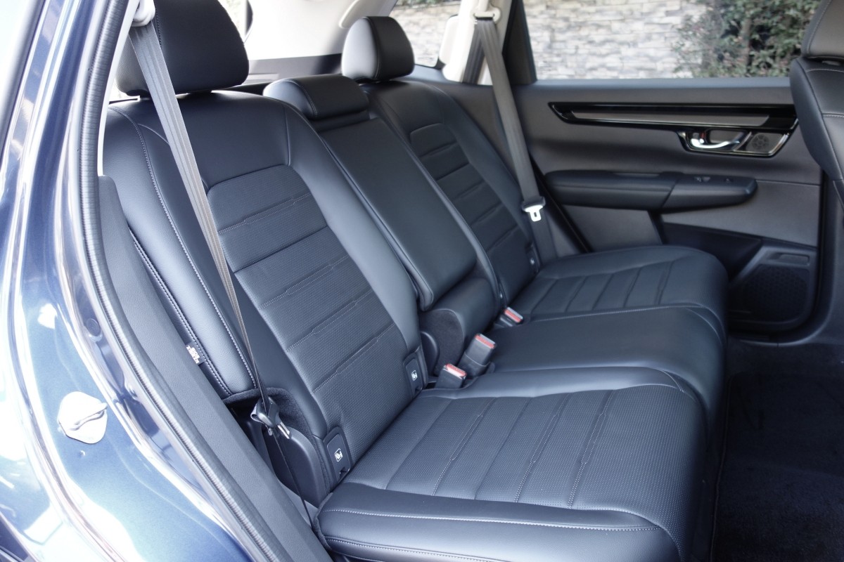 身長172cmの筆者のドライビングポジション基準の後席居住空間は、CR-Vが頭上に160mm、膝回りに最大285mm(190mmのスライド機構あり)。着座性、立ち上がり性にかかわるフロアからシート座面前端までの高さ=ヒール段差350mm(かなりアップライトとなり椅子感覚で快適に座れる)。一方、ZR-Vは頭上に130mm、膝回りに245mm。ヒール段差は295mm。つまり、CR-Vのほうが頭上、膝回りともに余裕があり、ヒール段差がたっぷりあり、シートバックに8段リクライニング(115度)機構もあるため、より快適に、より自由な姿勢で過ごせる後席になっているということだ。※ZR-Vでも筆者なら狭さなど感じないが。