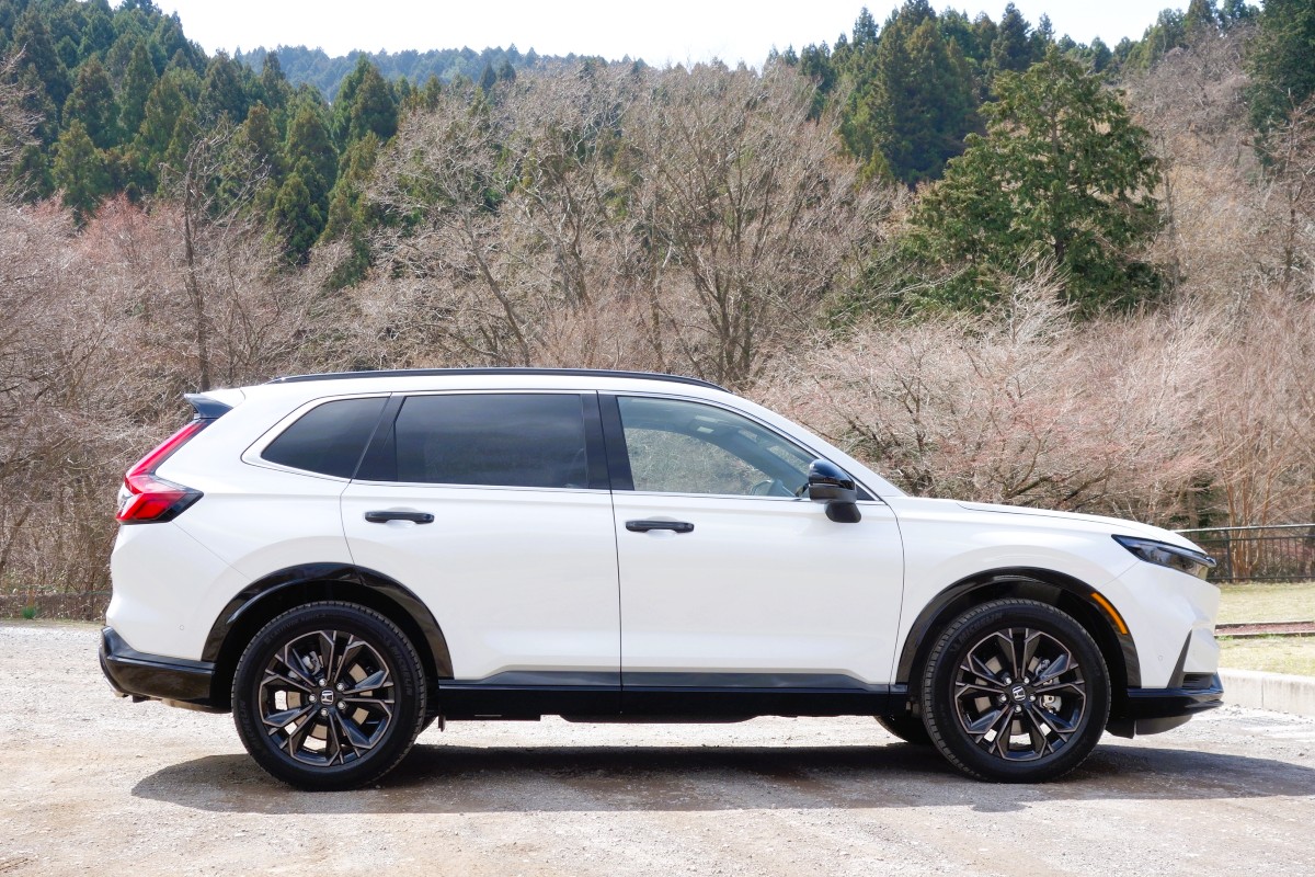 さすが、ホンダSUVのフラッグシップモデルだけに、エクステリアデザインは存在感と品格あるもので、こう言っては何だが、土のニオイをあまり感じさせない、初代からの都会派SUVというイメージを引き継ぐものとなっている。全長4700×全幅1865×全高1680~1690mmという堂々とした、小さすぎず大きすぎないボディサイズもその印象の要因だろう。※ZR-Vは全長4570×全幅1840×全高1620mm。