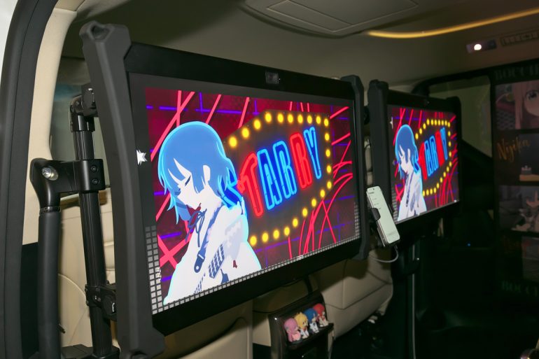 ボディのサイドには、アニメ「ぼっち・ざ・ロック!」の劇中バンド「結束バンド」のデコレーションが施され、車内でもこの「結束バンド」のアニメーションが流された。裸眼3Dは乗車する人の目の位置を捉えて、裸眼のまま3D映像を映し出す。