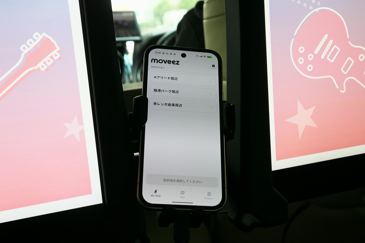 今回、ムービーズの自動運転技術とソニーのエンタテインメント技術が搭載された特別車両に試乗することができた。この試乗車は横浜で開催された音楽イベントで実際に使用され、赤レンガ倉庫、臨港パーク、Kアリーナに配車されていたクルマだ。