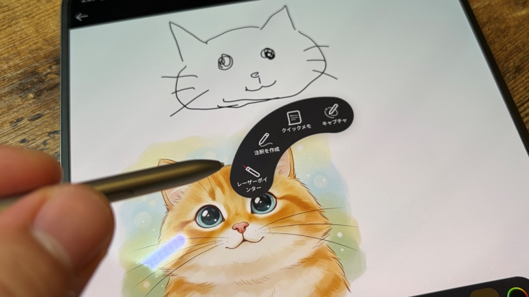 OPPO AI Penでは、ラフに書いた手書きメモをテキストに変換する機能だけでなく、手書きメモから簡単に表やチャートに変換できる「AIペインター」、イラストを作成する「AIイメージ」といった機能も利用できる。OPPO AI Penのボタンを長押ししながら画面上を囲うことで、手軽にキャプチャを撮影できるのも便利だ。