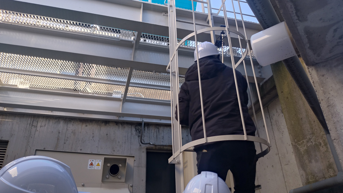 大ぴちょんくんは、この屋上からさらにハシゴを登った上に立っている。