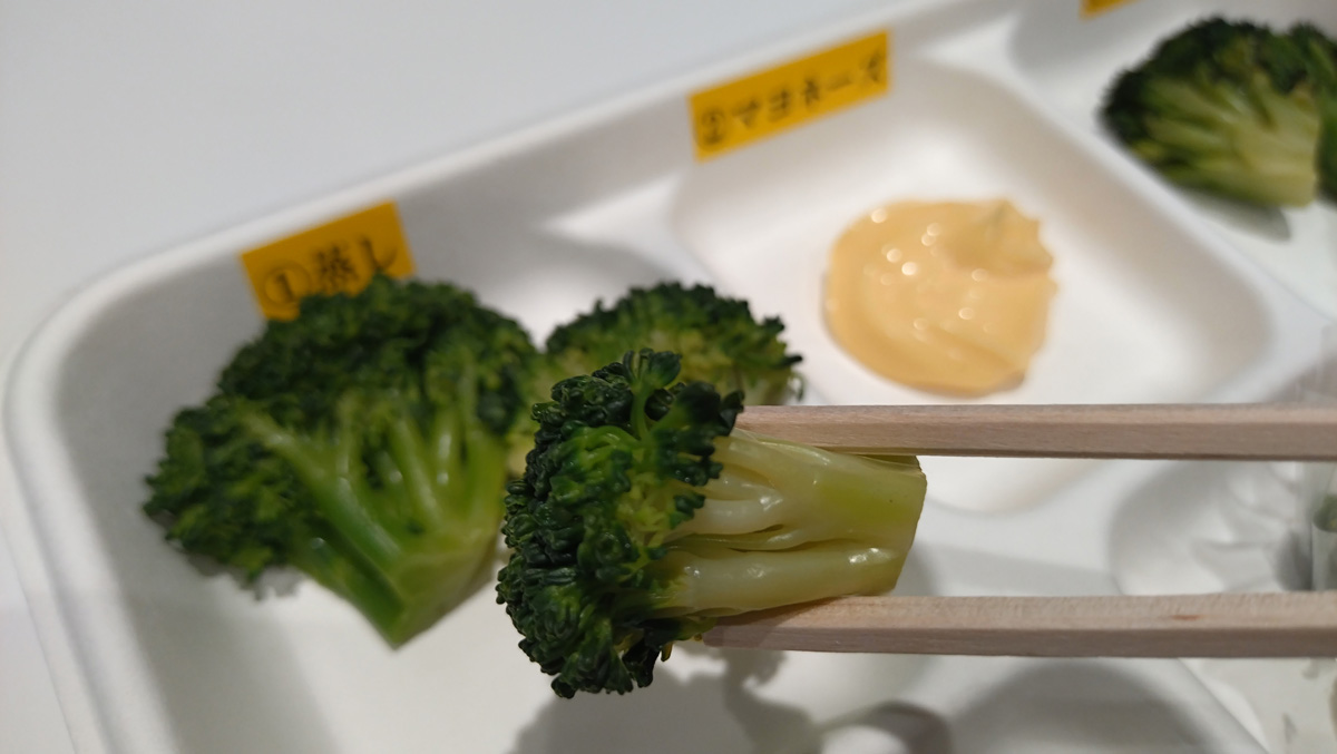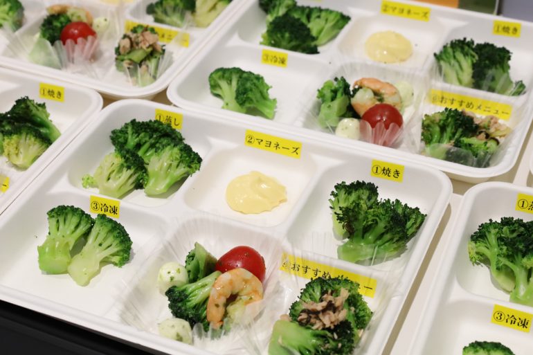 研究開発チームは、1日あたり約2株のブロッコリーを試食しながら来る日も来る日もブロッコリーに向き合い、1年かけて「食感と臭気対策」を両立させる条件を発見。冷凍ブロッコリーのように柔らかすぎず、生のように硬すぎない絶妙なポリポリ食感を実現した。