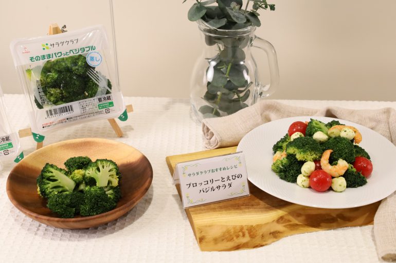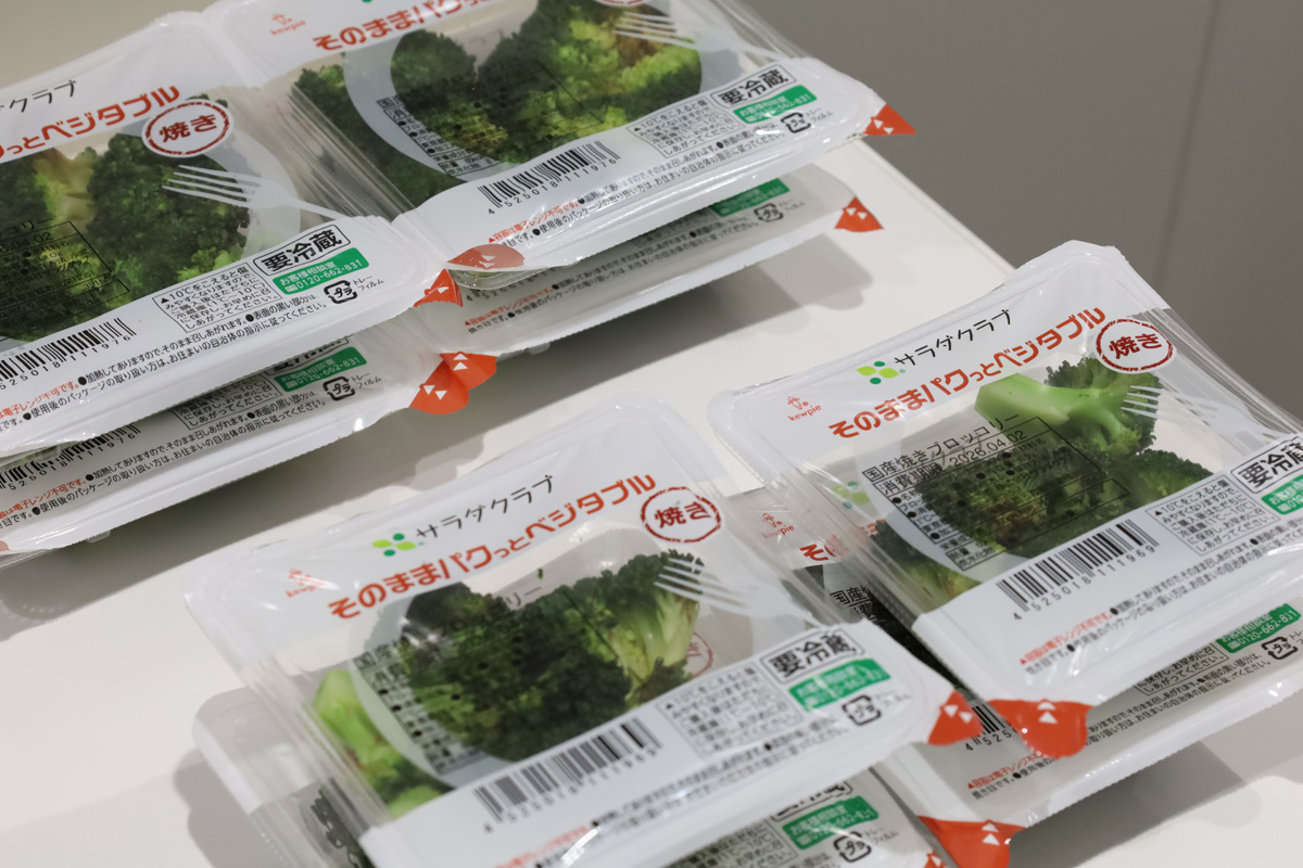 『指定野菜』に昇格したブロッコリーに力を入れるのが、千切りキャベツなどのパッケージサラダを製造・販売する大手・株式会社サラダクラブ(キユーピーと三菱商事が設立)だ。3月に開催された新商品戦略発表会では、加熱済み野菜の新シリーズ『そのままパクっとベジタブル(通称:パクベジ)』を発表した。
