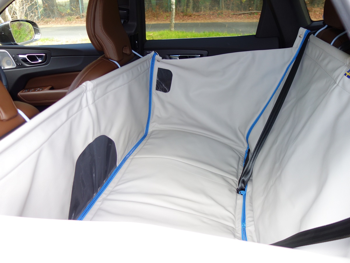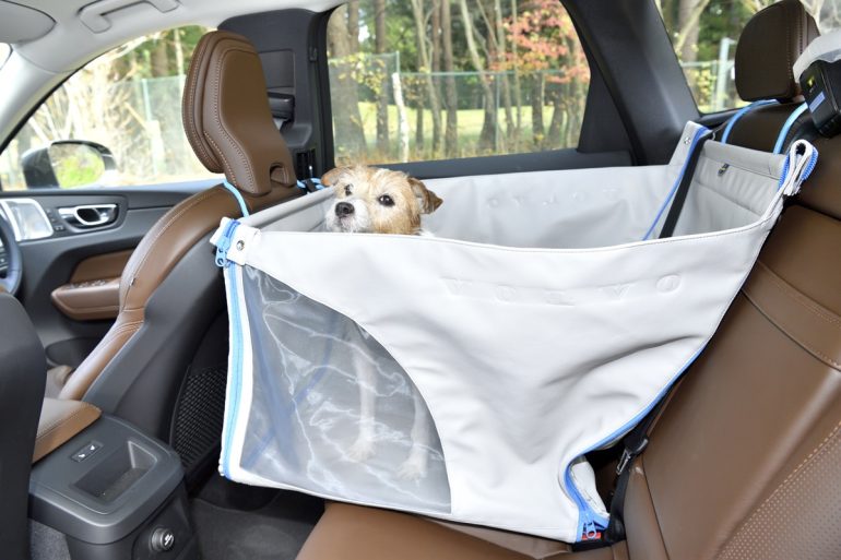 ただし、左右にメッシュ状の窓がないと通気性が損なわれるので、爪でひっかいても破れないメッシュ窓が左右に付いているものがいい。ホンダ純正のドッグアクセサリーのペットシートサークル、ボルボ純正のドッグベッド・ハーフサイズなどがそれに相当する。ホンダのペットシートサークルのように、飛び出し防止リードが付いていればより安心である。装着時の注意点としては、後席シート座面はフラットではなく、後ろ側に角度が付いている(下がっている)のが通例なので、ドッグベッド/サークルがフラットに設置できるようにタオルなどで調整してあげると、愛犬がより快適にドライブを楽しめることになる。