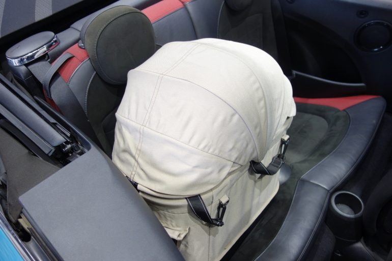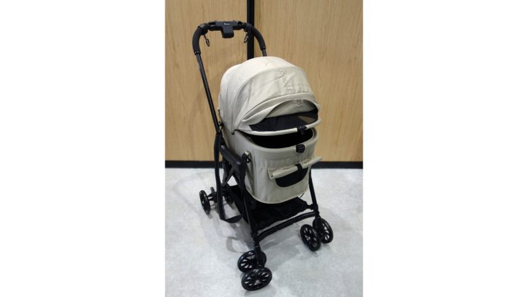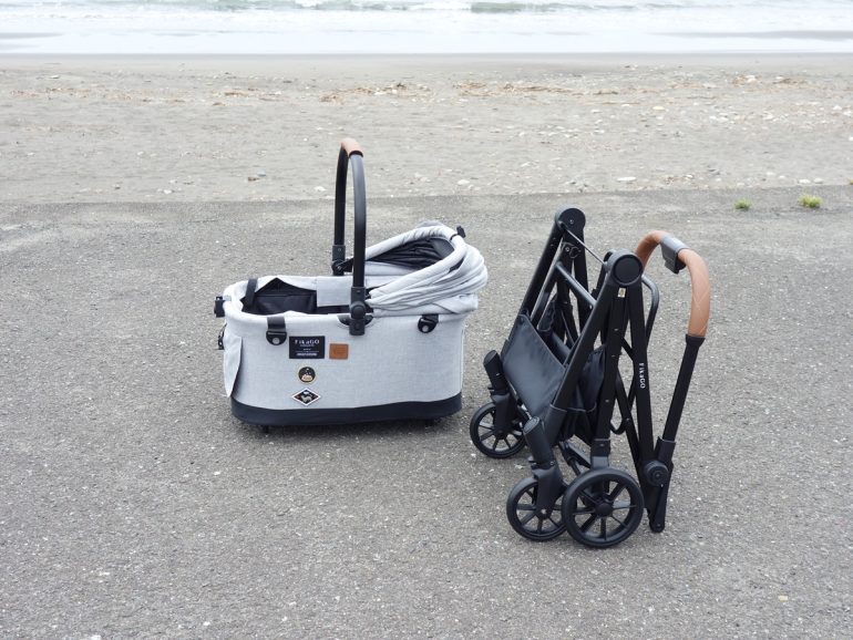 筆者も愛用する、コムペットのFikaGO(フィカゴー)はキャビンを外した状態で、片手のボタン操作だけで車体本体を自動で折り畳める”1秒オートクローズ機能”を持つペットカートで、オプションのカーシートプロテクションを敷くことでキャビン設置時のシートのキズ付を防いてくれる(ここも重要)とともに、カーシートプロテクションとキャビンとの接続によってチャイルドシート固定用のISIFIXアンカーにしっかりと接続できる、車内での使用も可能となるペットカートだ。さらにキャビンには通風孔もあり、暑い時期にエアコンの冷風をキャビン内に取り込むこともできるから万全だ。※通風孔不採用のキャビンもある。