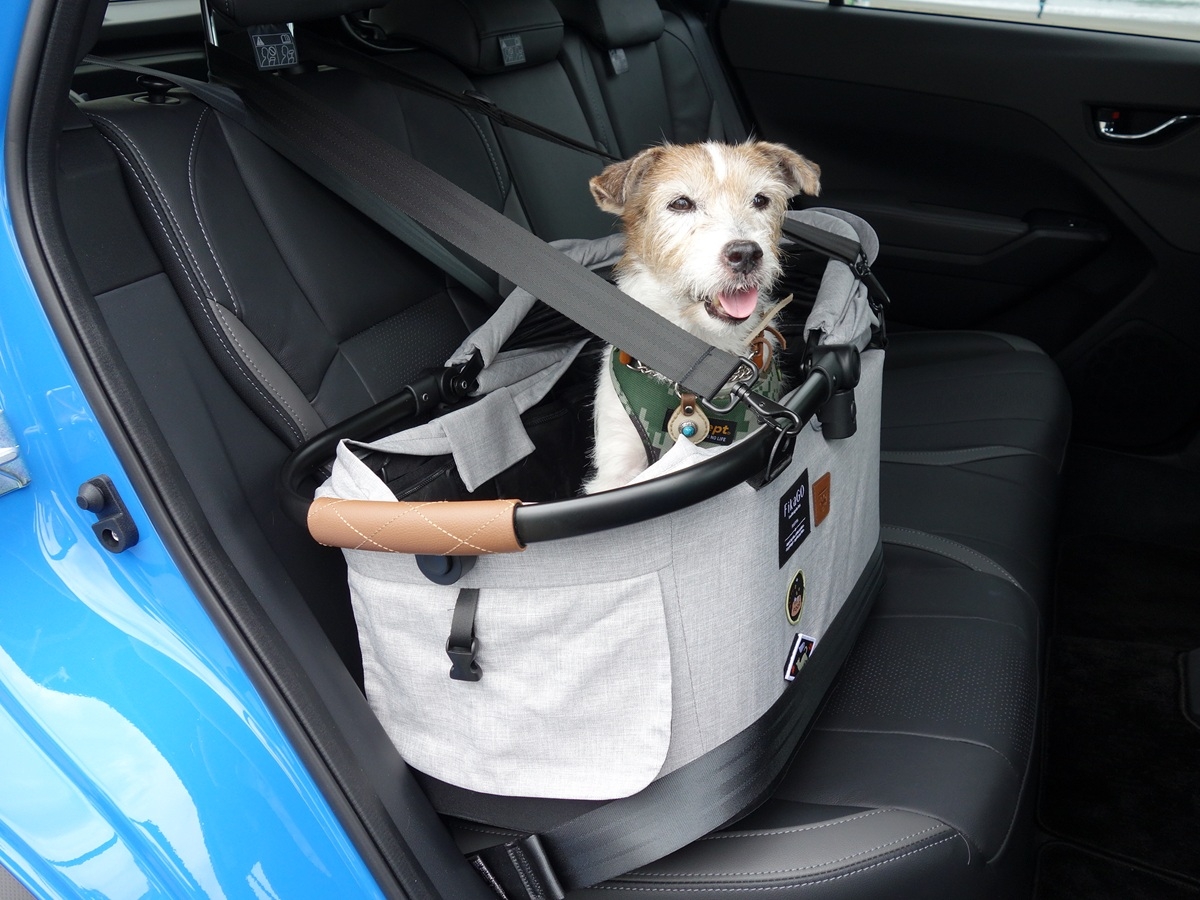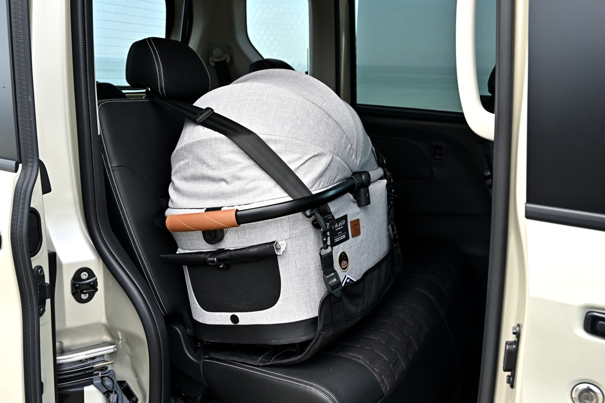 ペットカートの中には、愛犬が乗るキャビンと本体が分離できるタイプがある。そのキャビンをシートベルトやチャイルドシート固定用のISIFIXアンカーに固定すれば、かなりの安全・安心が確保できることになる。合わせてソフトハーネスとリードを併用すれば完璧だろう。