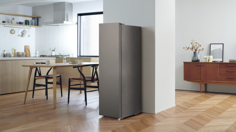 「GF-A11HS」は、定格内容積108Lの1ドア冷凍庫。最大の特徴は、キッチンやリビングの限られたスペースにも設置しやすい横幅364mmのスリム設計を実現しているところ。しかも、背面の放熱スペースが不要なため、壁にぴったり設置することが可能だ。