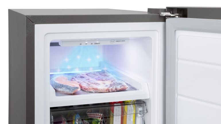 さらに、食材を入れるとセンサーで温度変化を検知し、自動で急冷凍を行う「おいしさ急冷凍」を搭載。W-UV除菌も搭載し、素早く冷やし、清潔に、よりおいしく冷凍保存できる。