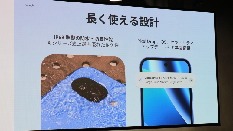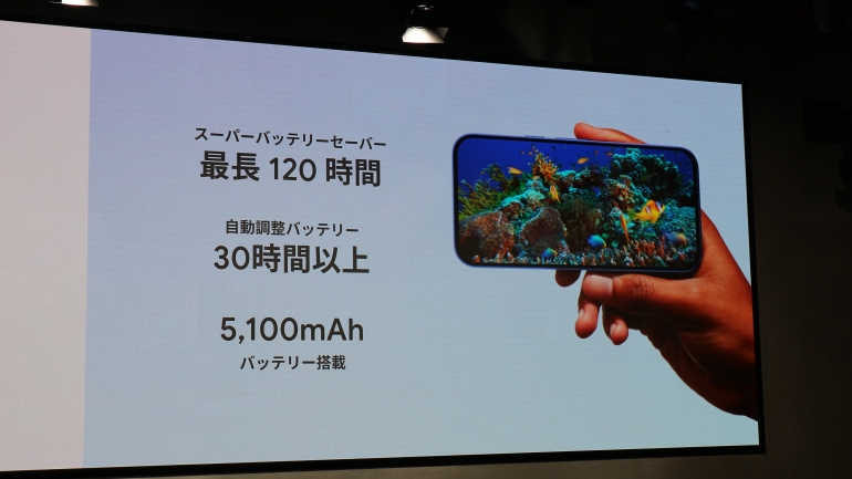 バッテリーも5100mAhで共通となり、通常で30時間以上、スーパーバッテリーセーバー使用時は最長120時間駆動する。また、7年間のOS、セキュリティ、新機能(Pixel Drop)のアップデートが保証など、前モデルと変わらず、長く安心して使用できるのも特徴だ。