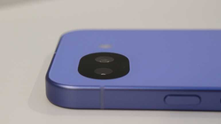 前モデルから進化したのが、ハードウェアやデザイン。Aシリーズとしては初めて、カメラバーの突起をなくした完全フラットな背面デザインを採用。手に馴染み、ポケットへの出し入れがスムーズなうえ、机などの平らな場所に置いてもぐらつかない点をメリットとする。