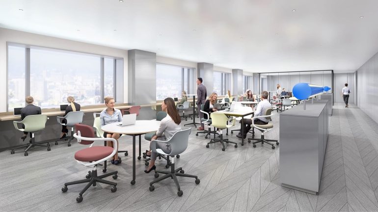 本拠点では、空間そのものにも徹底的にこだわった。内装デザインは、GMOインターネットグループ第2本社・渋谷フクラスのコミュニケーションスペース「シナジーカフェ GMO Yours・フクラス」なども手がけた、GLAMOROUS co.,ltd.代表の森田恭通氏が担当。機能性と美しさを高い次元で両立させ、世界水準の研究開発にふさわしい創造空間を具現化している。