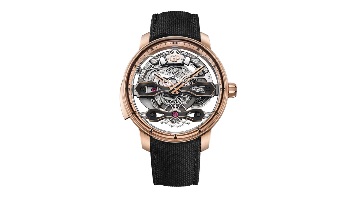 最高の透明度を保つために巧みなオープンワークが施されたキャリバー GP9530 は、1800 年代半ばからブランドを象徴するスリー・ブリッジの構造をモダンに演出しており、この現代的なバージョンでは、ムーブメントの後部に3つ目のブリッジが配され、歴史的な美学を再解釈した。