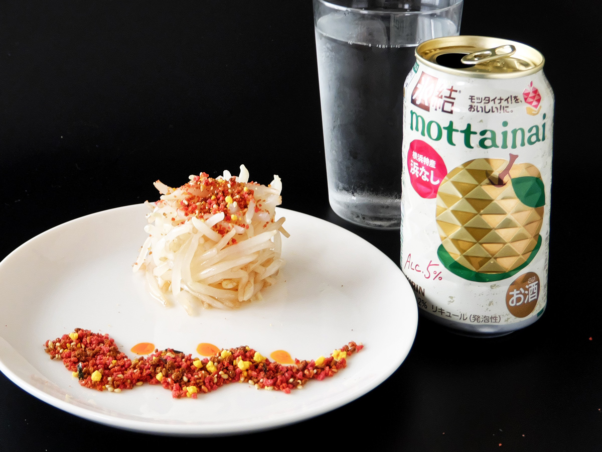 ただ見た目がやっばり『貧者』っぽいんで、ちょっと洒落た盛りつけにして『キリン氷結 mottainai 浜なし』と合わせてみました!!