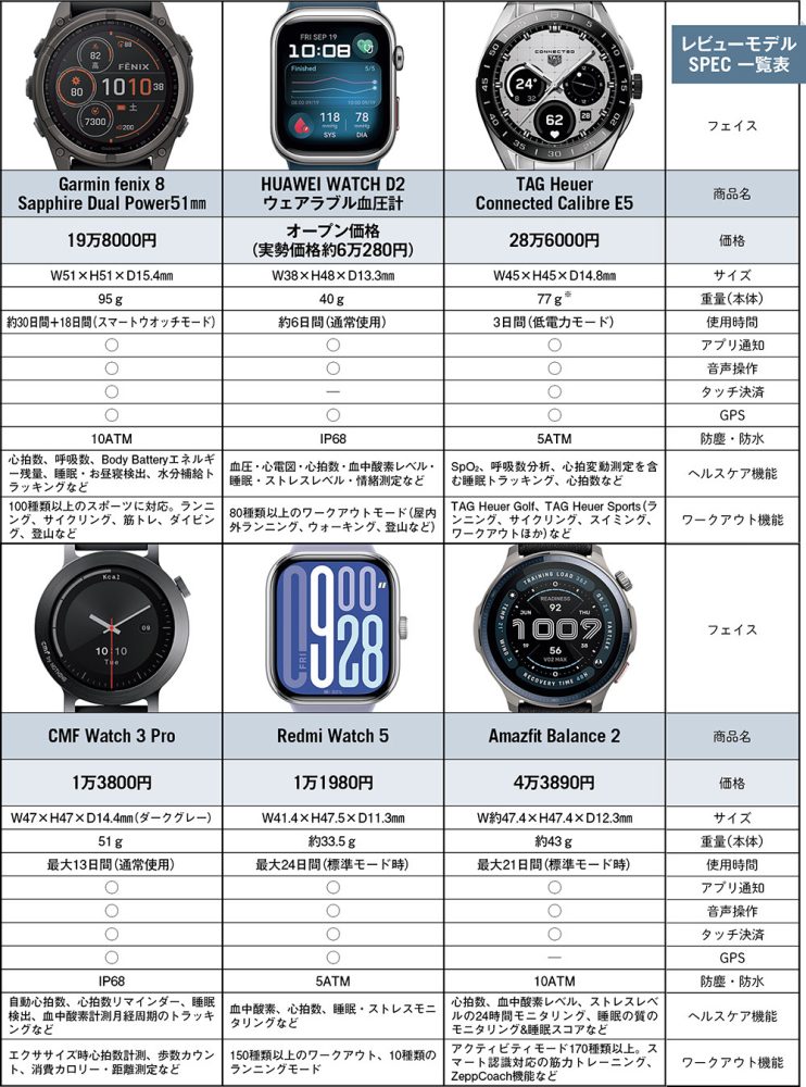 高級時計の格を纏うタグ・ホイヤーや、血圧計を内蔵したファーウェイなど、個性的な機能をもったモデルも続々登場。自分の「ライフスタイル」や「目的」に一点突破で応えてくれる相棒探し。そんな「脱・神話」の選び方こそ、26年春の最適解なのだ。