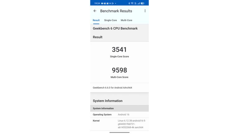 もちろん、ハイエンドモデルとしてパフォーマンスの高さは保証されている。チップセットには、クアルコムのSnapdragon 8 Elite Gen 5を採用。メモリ(RAM)も16GBと大容量で、ストレージの一部を仮想メモリとして使う「RAMの拡張」にも対応している。2つを合算すると、最大で24GBまで拡大できる。「Geekbench 6」でのスコアは以下のとおり。現行製品の中では、もっとも性能が高い製品の1つと言える。