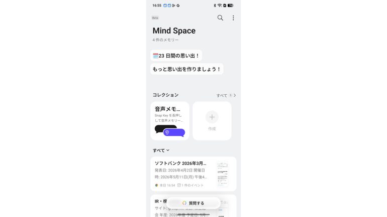 OPPO独自のAI機能も役に立つ。本体には、音量キーの上に「Snap Key」が搭載されており、標準では「Mind Space」という機能に割り当てられている。ワンクリックでスクリーンショット、長押しで音声を保存し、それをAIで解析するというものだ。例えば、予定が書かれたメールを保存すると、中身を解析して、タスクへの登録をワンタッチで行えるようになる。