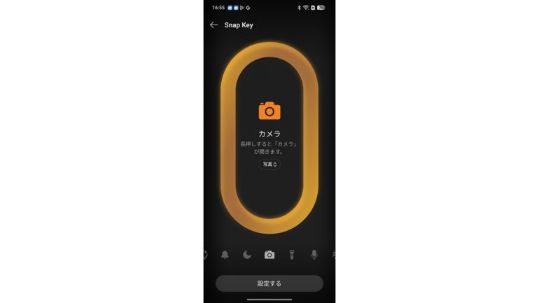 この機能を使わないというときには、Snap Keyに別の機能に変更することも可能。サイレントモードやカメラの起動、さらには翻訳の呼び出しなどに設定することもできる。フォルダブルスマホは片側がヒンジになってしまうため、キーが3つも並んでしまって少々操作が煩雑になる一方、ワンタッチでお気に入りの機能を呼び出せるのは便利だ。