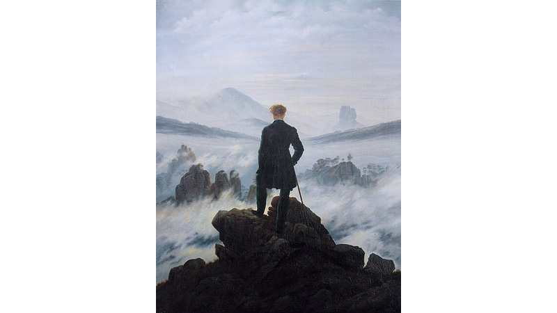 彼の代表作《雲海の上の旅人》では、岩山の上に立つ男性が、雲に覆われた広大な景色を見下ろしている。