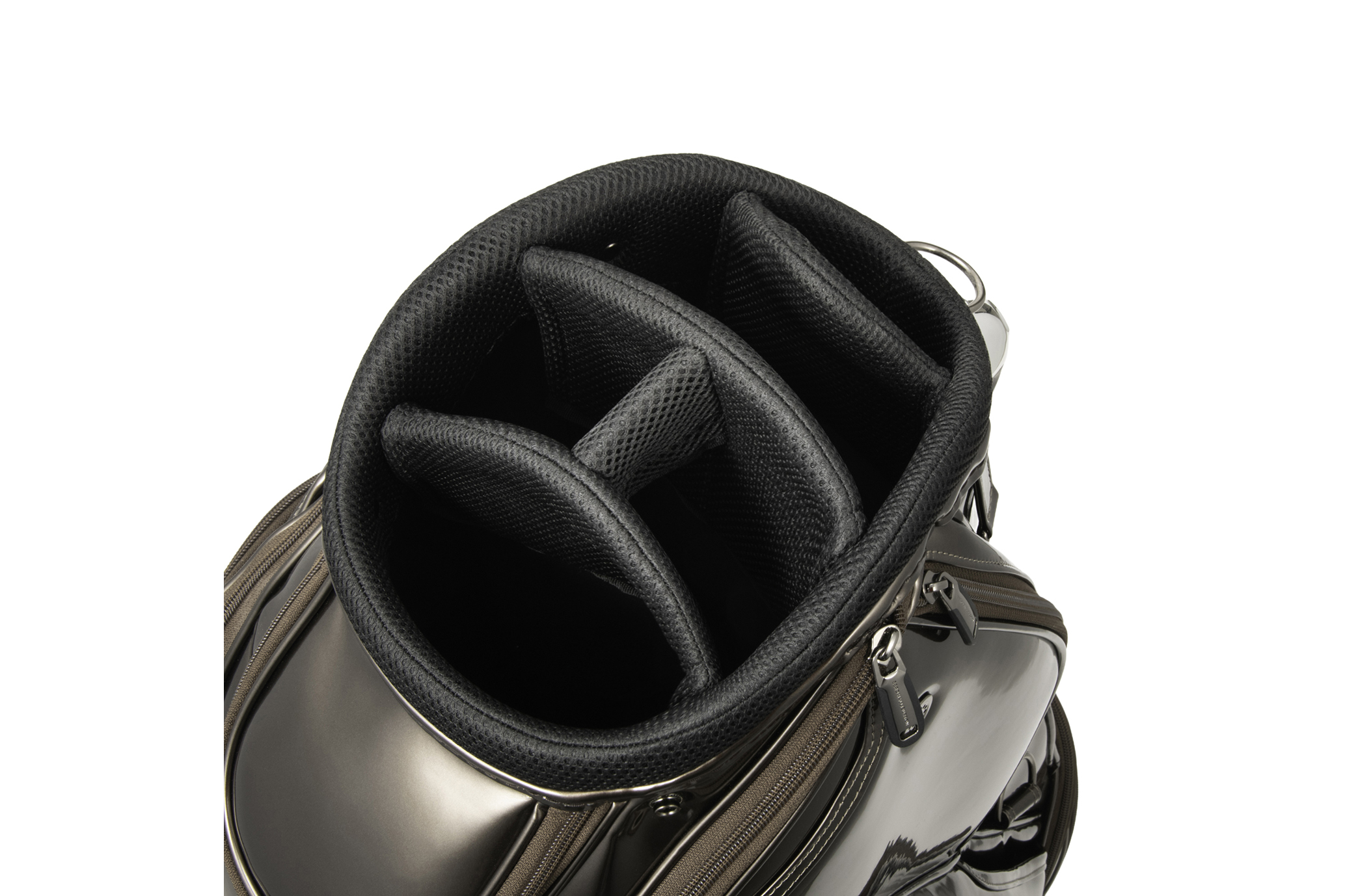 緩衝材を内蔵した9型5分割の口枠で、大切なクラブを守る設計を採用。シャフト同士の干渉を防ぎ、クラブをスムーズに出し入れが可能だ。