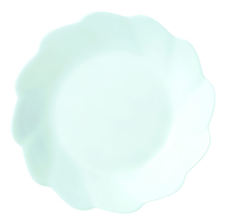 ゆるやかに立ち上がりのあるシンプルな平皿で、ほどよい深さがあるため、スープやソースを添えた料理にも使いやすい。サンドイッチや卵料理、サラダなど、パンと一緒に楽しむメニューに自然と馴染む一枚だ。