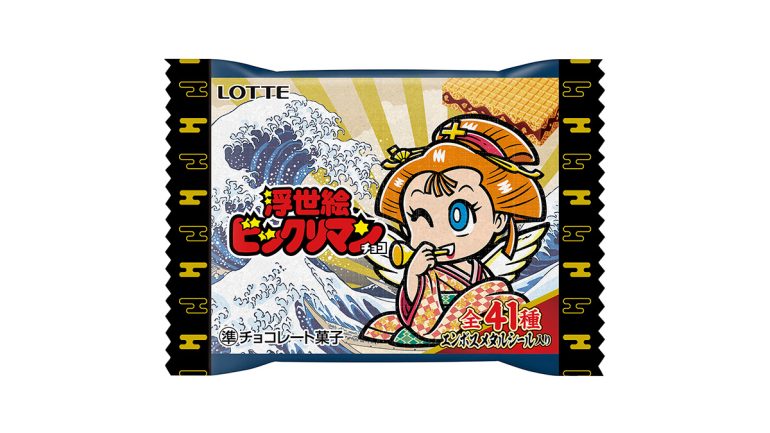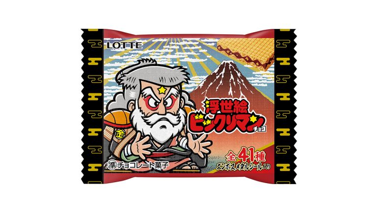 商品は、サクサクおいしいウエハースチョコとエンボスメタルシールを封入。シールでは、浮世絵の名作を『ビックリマン』らしく表現している。世界的に日本文化への関心が高まる中で、浮世絵は国内外の展覧会などを通じて改めて注目を集めているが、この潮流を踏まえて江戸時代のポップカルチャーである浮世絵を『ビックリマン』ならではの表現で現代的に楽しめる企画として商品化している。
