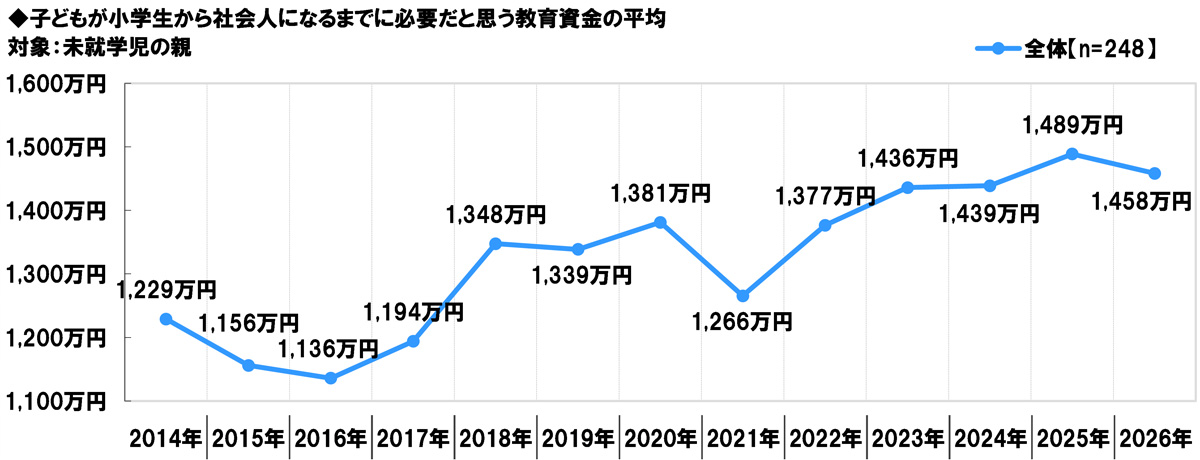 小学生から社会人になるまでに必要な教育資金 平均予想金額は1,458万円