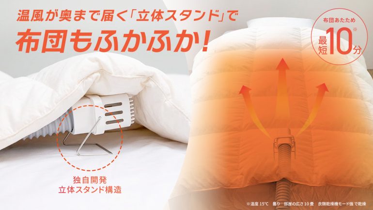 洗った靴も雨で濡れた靴もスピーディーに乾燥でき、独自開発の立体スタンド構造で布団の隅々までふかふかに!
