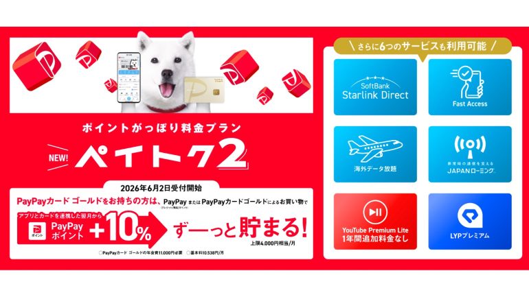 ソフトバンクは新料金プラン「ペイトク2」「テイガク無制限」および「ミニフィット2」の提供を2026年6月2日より開始すると発表した。