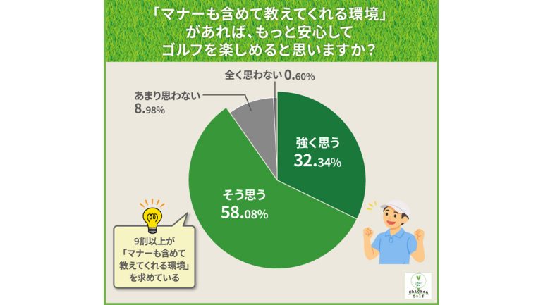 ゴルフスクールでマナーを学んだ人がわずか9%にとどまっている現状は、「学びたい気持ちはあるのに、マナーを体系的に学べる場が十分に認知・活用されていない」ことを意味していると推察される。