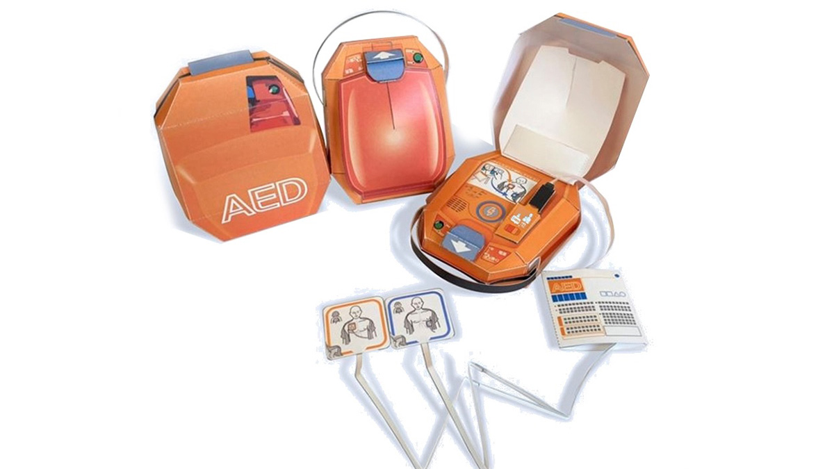 まず、坂野さんが制作したのが「ペーパークラフトAED」。子どもでも簡単に組み立てられる本物そっくりなデザインは一躍話題に。