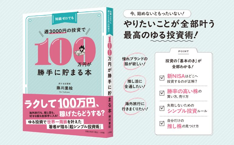 2026年4月23日(木)、株式会社小学館より、旅する投資家・藤川里絵(ふじかわ・りえ)さんの新刊『知識ゼロでも週3000円の投資で100万円が勝手に貯まる本』が発売されます。