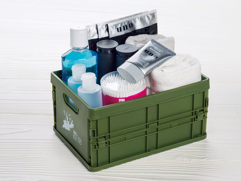 サイズは幅16.5×奥行23×高さ12cm。使わない時は折りたたんでコンパクトに収納できる。重ねて使用することもできるので、散らかりがちな小物の整理収納に便利だ。