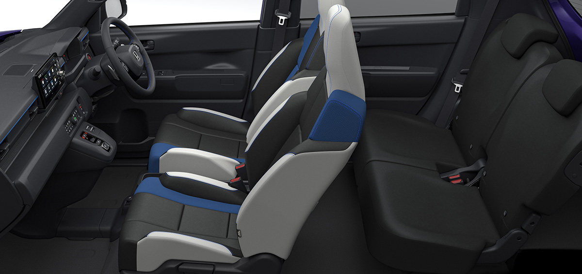 なお専用のスポーツシートは、高いホールド性で安定したポジションを確保し、ブルーの表皮をアシンメトリーに配色して遊び心を演出している。さらに、水平基調のインストルメントパネルで、運転に集中できる視界を実現した。